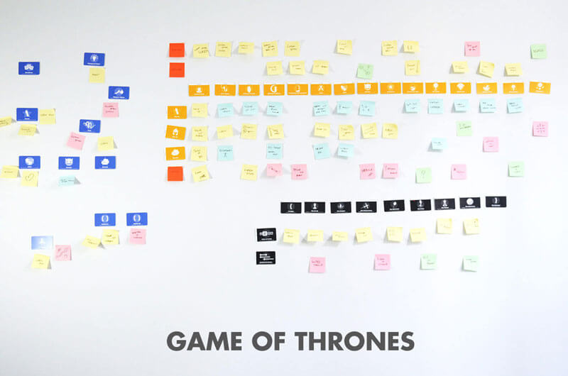 You can place Fabula on walls, tables, floors or any other available surface, with the help of adhesive putty or tape. Each card is like a box to fill, so you can just arm yourself with post-its and a pen, and start inventing!