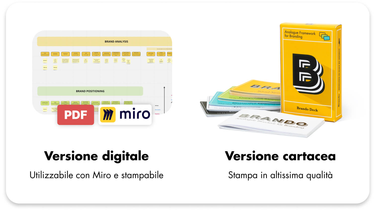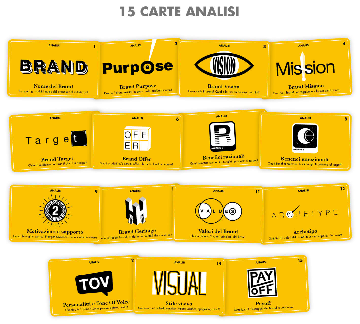 Brando è un mazzo di 41 carte che ti fornisce un approccio pratico e comprovato per la creazione e la gestione di ogni tipo di brand.