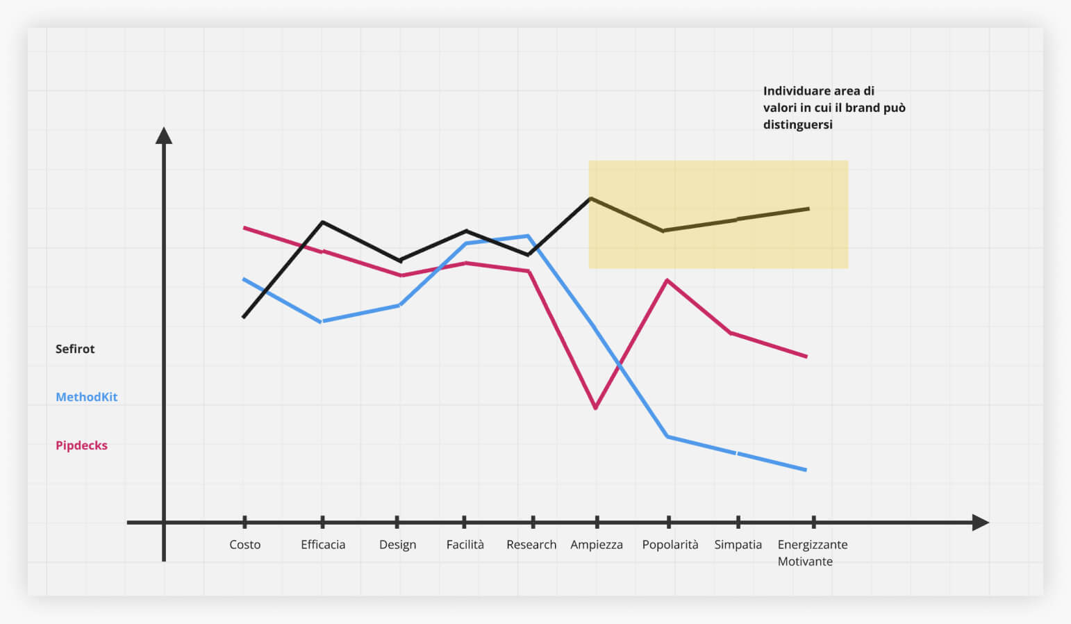L’obiettivo è quello di costruire un grafico con i valori che gli altri utilizzano in modo da individuare le opportunità latenti.