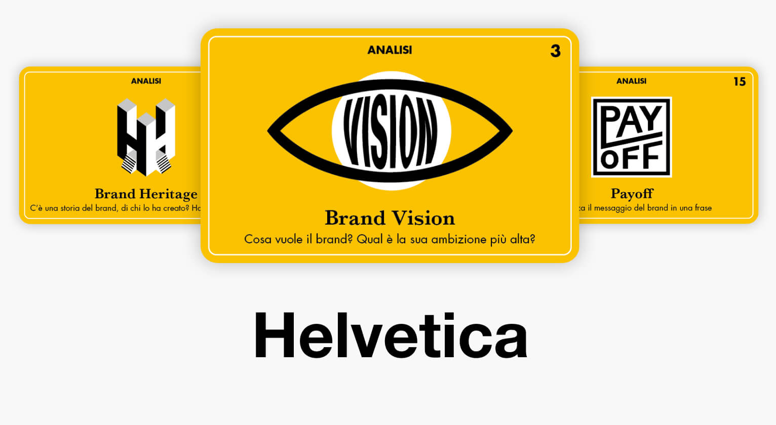 Ogni carta è un piccolo brand. Sono stati tutti disegnati usando la font Helvetica, come esercizio di stile e come augurio affinché Brando possa essere lo strumento per portare i vostri brand al successo ❤️