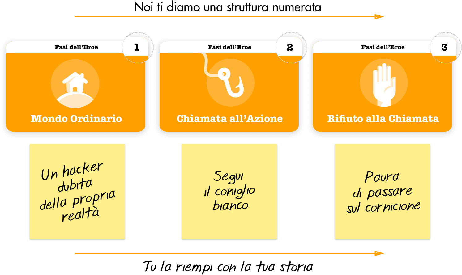 sulla struttura a tre atti e con quelle puoi mettere in ordine gli eventi della storia come farebbe un regista. È come una sintesi focalizzata sull'audience: